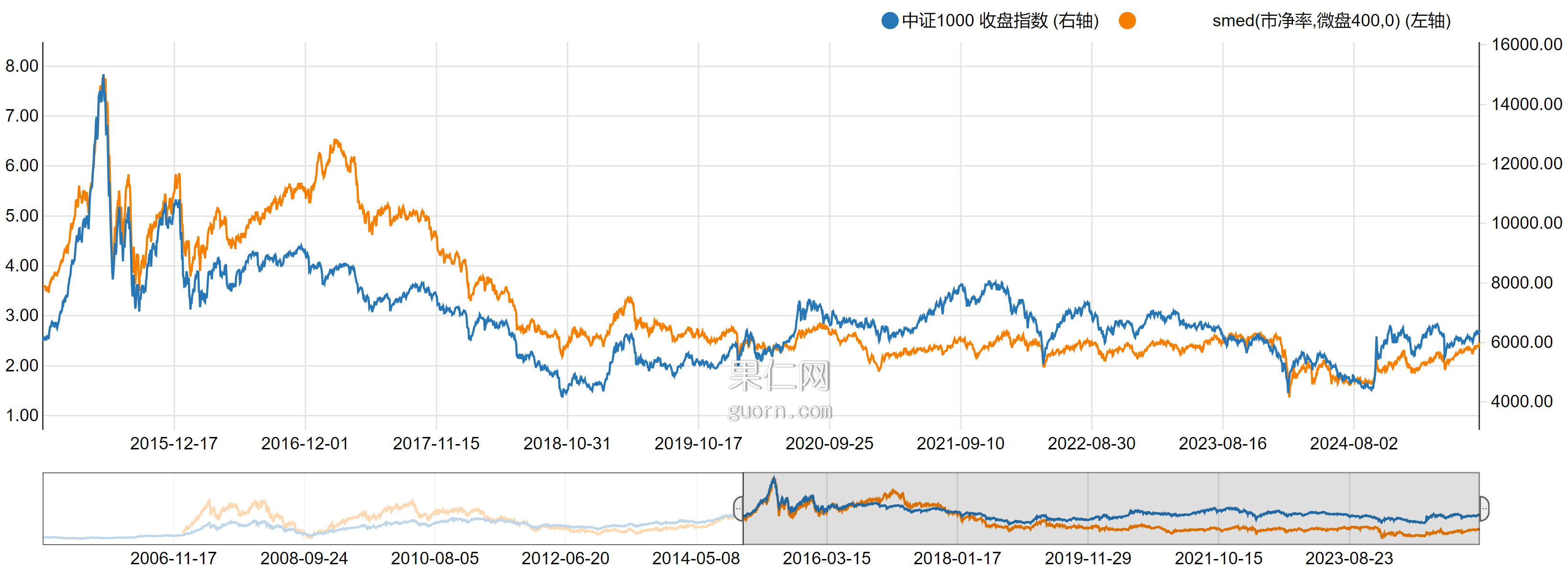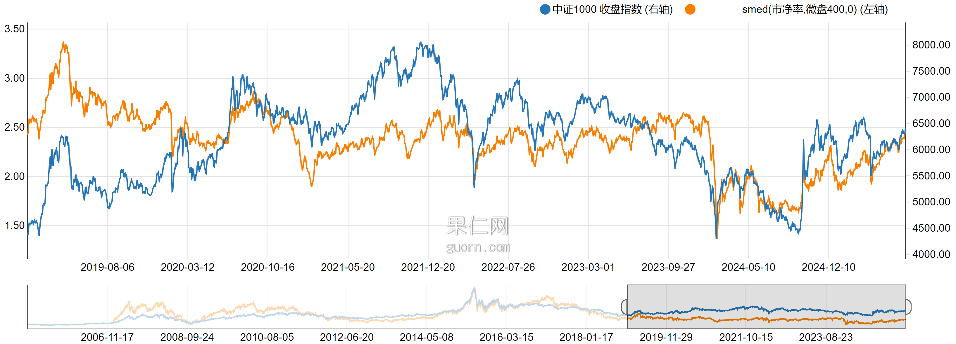 微盘400的中位数市净率,2.0以下都是重要低点。