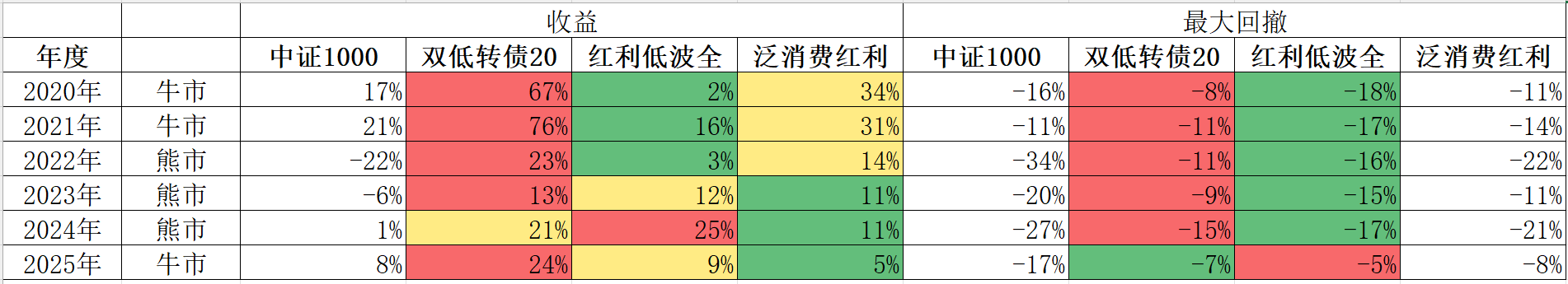 但双低转债每年的收益,好于红利里面最强的红利低波全收益,