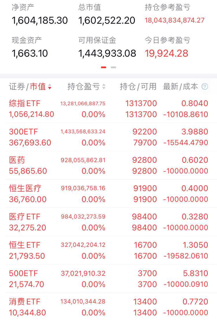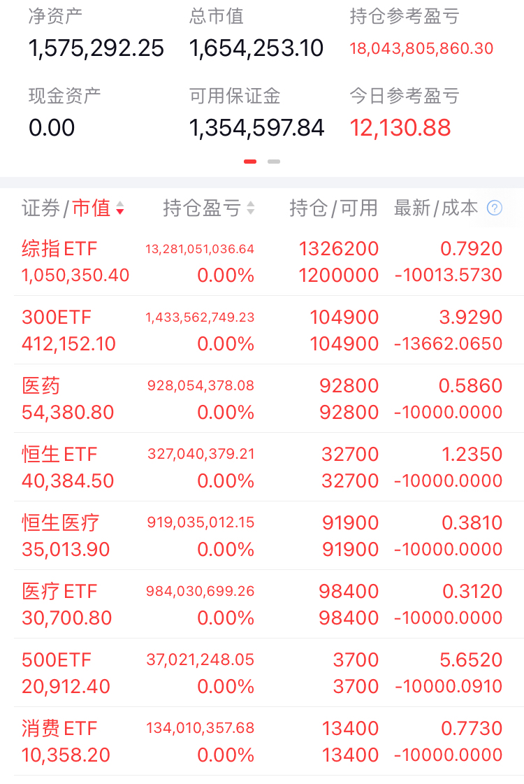 (3)当前(25年1月9日中午)持仓:151w(上证etf 78w,300etf 55w,医药医疗etf 11w等),当前盈亏:-5.4w。