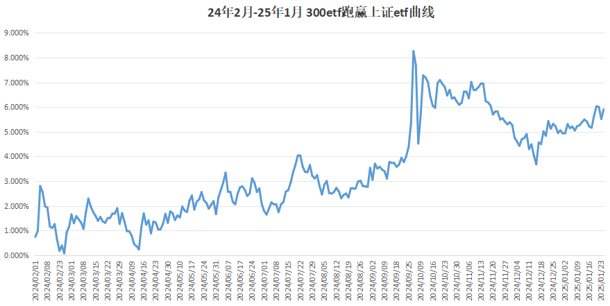 300etf跑赢上证etf 0.65%,缩小到0时轮回300etf