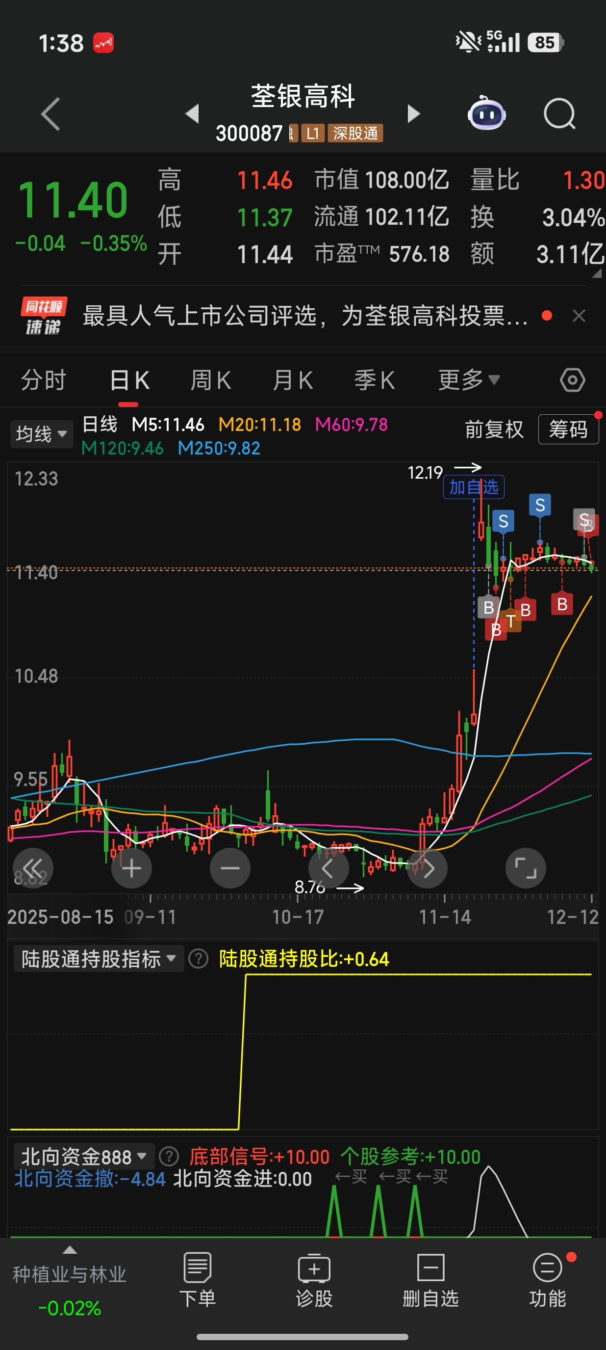 3. 荃银高科 走势很稳,小网格赚点零花钱,有利润必须及时收割