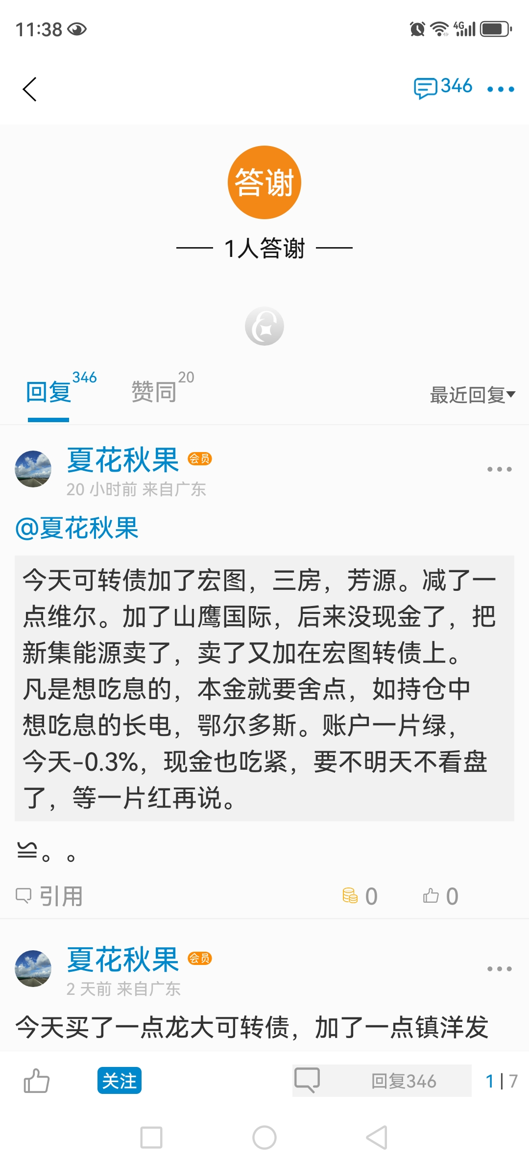今天上午的账户一片红艳艳,我那个的高兴啊!下午就画风突转,很多都变绿了,收市的时候,还是有三个能撑起大局的,一个就是文科转债(清了),一个是中远海控(算是清了),一个是长江电力(重仓没动),这三个今天力挽狂澜,账户红了0.5%,大欢喜!