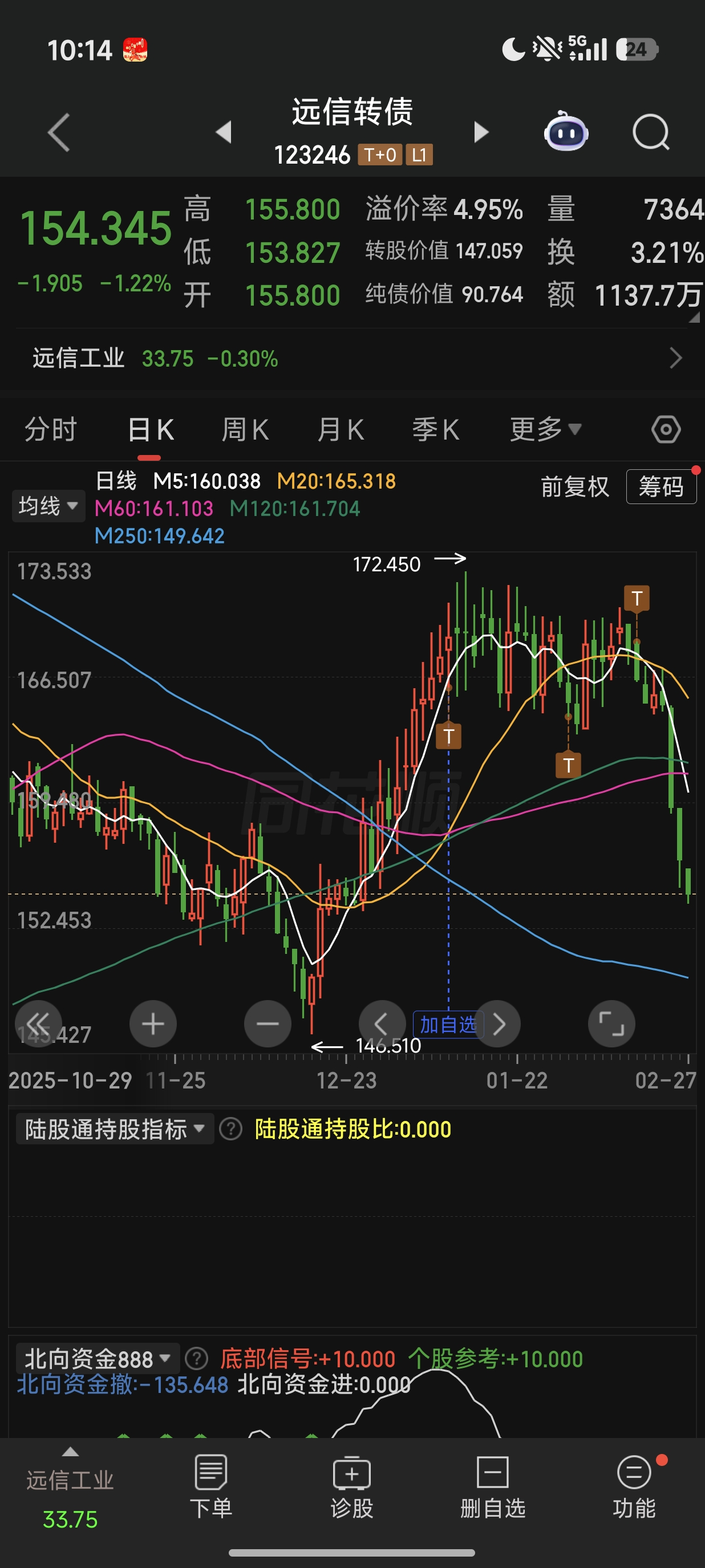可转债水位比较高了,有时候去拿那些差不多强赎的,像赌博一样抢两子儿,后来不准备搞这个了,要胜算把握超过6成才拿小仓位试一下。