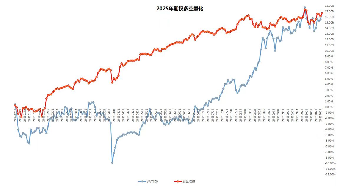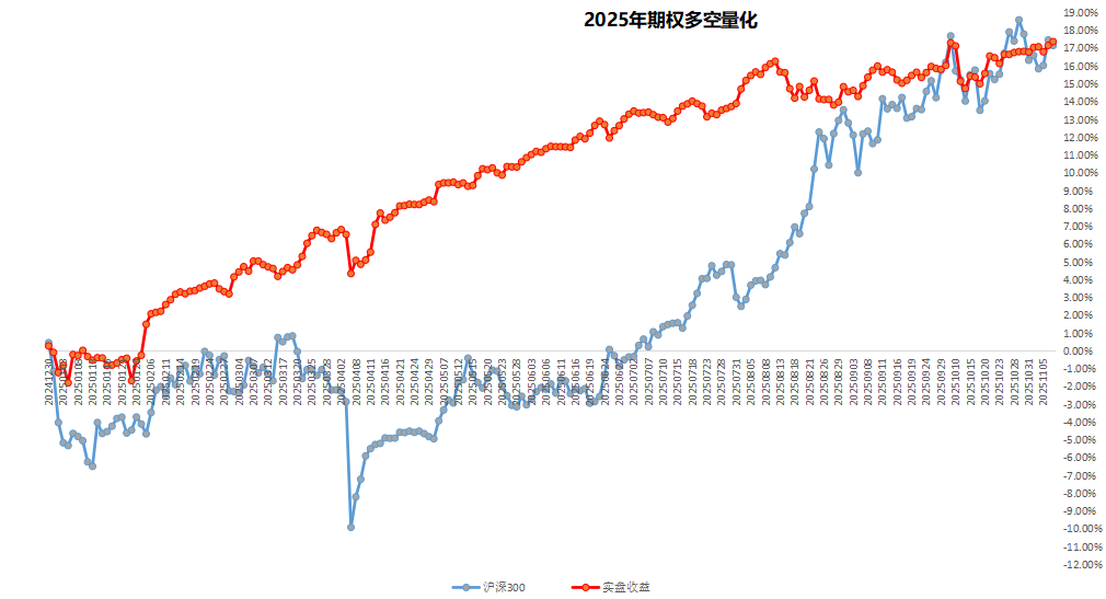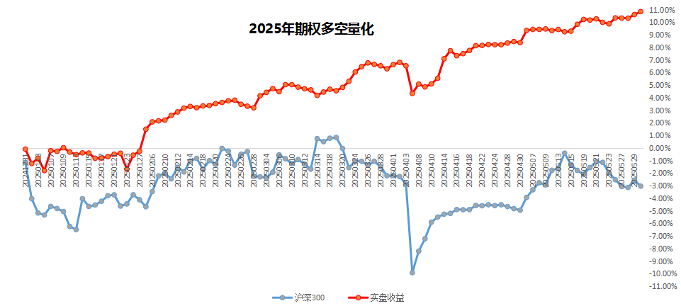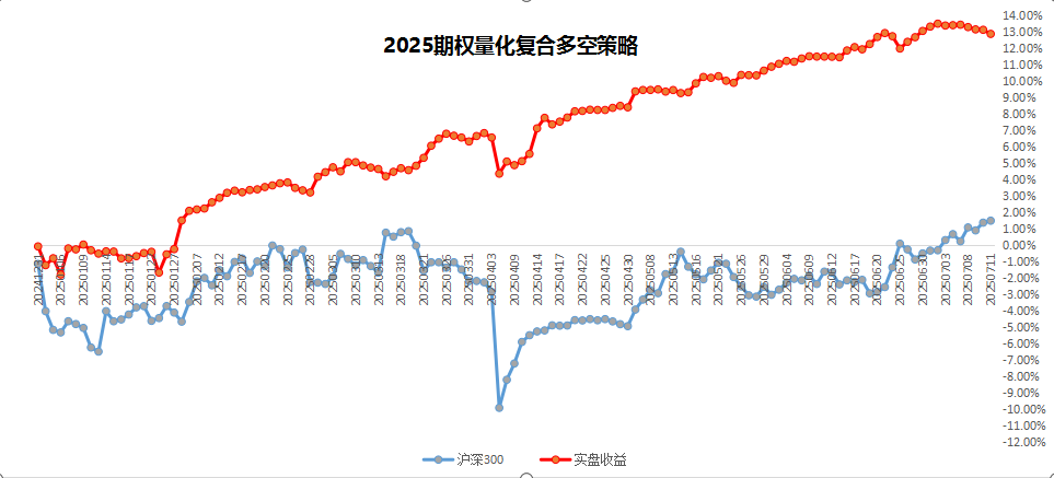 期权量化复合策略,2025年累计收益5.31%,本周一关税大战正式打响指数跌停,波动率单日爆波市场尾部风险凸显,部分卖权策略集体爆仓,我们当日回撤2.2%,随后进行修复目前本周回撤为1%,回撤继续稳健修复中