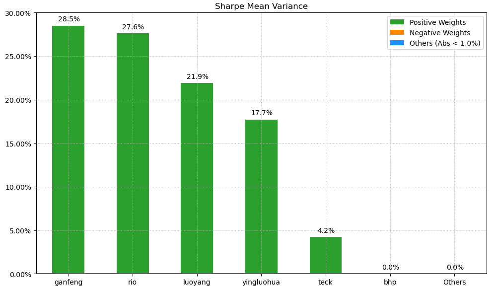 按最高夏普比率配置的话,系统给的权重为17.7,最大权重给了赣锋锂业占比28.5%。