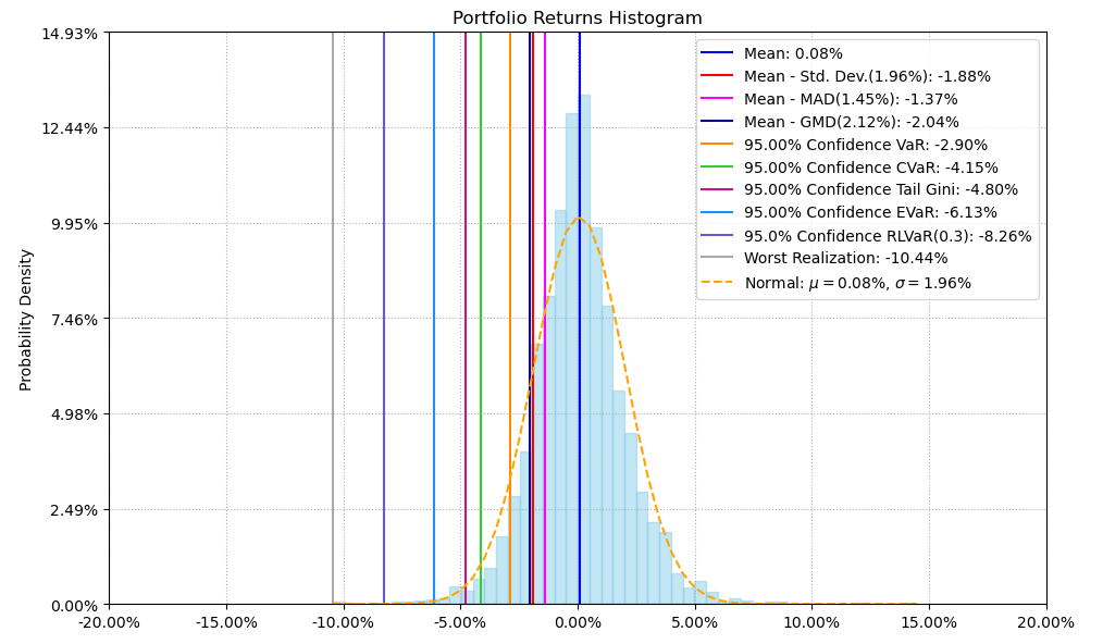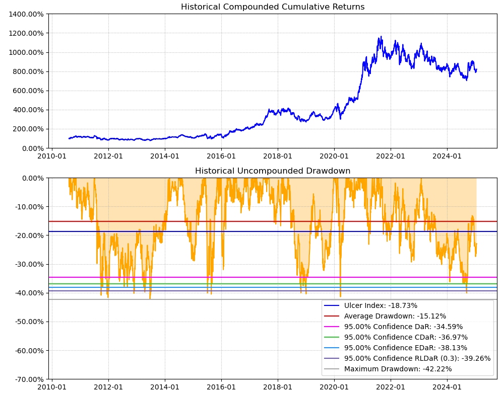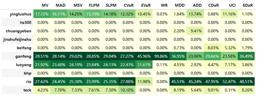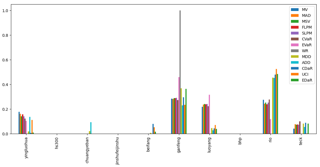 最后看下整个投资组合的情况,日度均值回报在0.08%,比上次测的汽车制造行业低50%,而且10.03%的CVaR波动也不算低。
