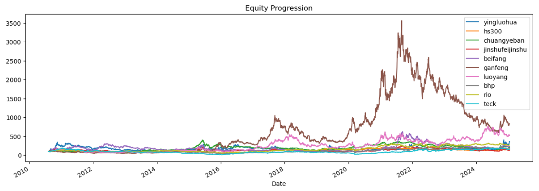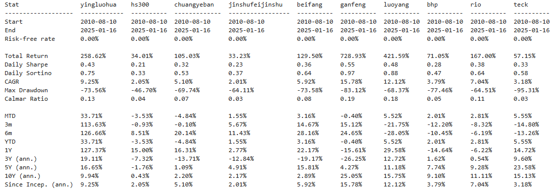 英洛华,基本面一般,历史表现没啥亮点,而且目前估值也不低,建议回避。整个金属非金属行业历史表现中规中矩,但波动偏大,夏普比率没啥吸引力,不建议关注,如果一定要配置的话,美股看力拓,A股看赣锋锂业。