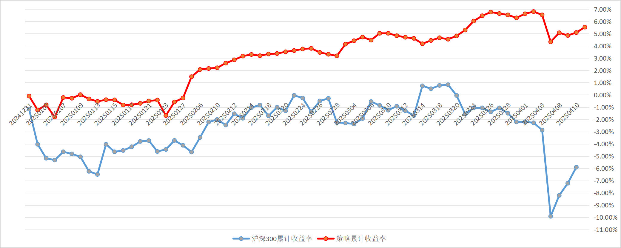 期权量化复合策略,2025年累计收益5.31%,本周一关税大战正式打响指数跌停,波动率单日爆波市场尾部风险凸显,部分卖权策略集体爆仓,我们当日回撤2.2%,随后进行修复目前本周回撤为1%,回撤继续稳健修复中