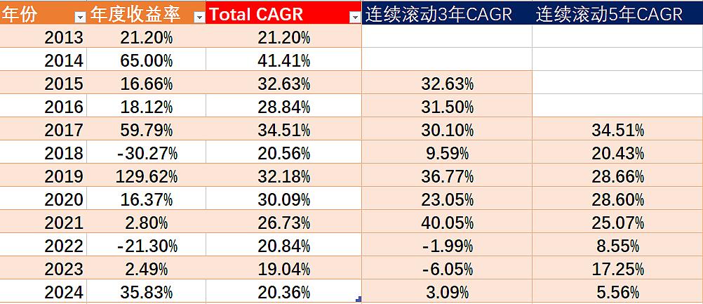 十二年的维度,20%的整体CAGR,长期是保住了。