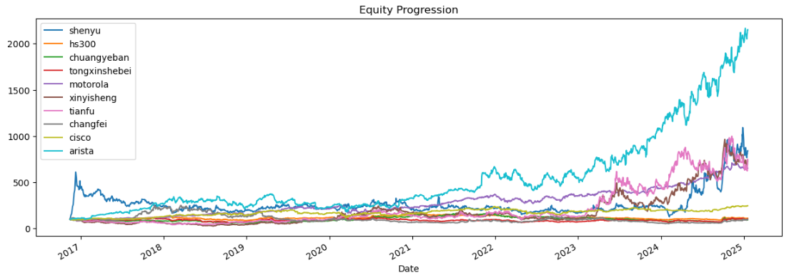 区间累计回报近26倍,最大回撤30.69%,投资组合的整体表现远好于神宇股份个股。整个通信设备行业盈利能力卓越,波动也是真的大,夏普比率1.5羡煞旁人。