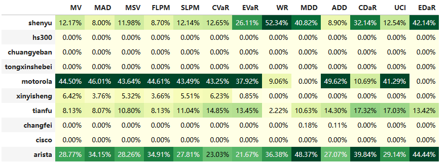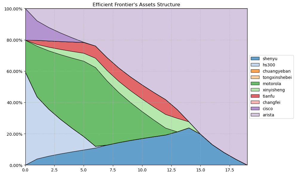 如果换成其他约束,系统给的配置比例也大同小异,基本是在公司和美股的摩托罗拉以及ARISTA网络之间做取舍了。