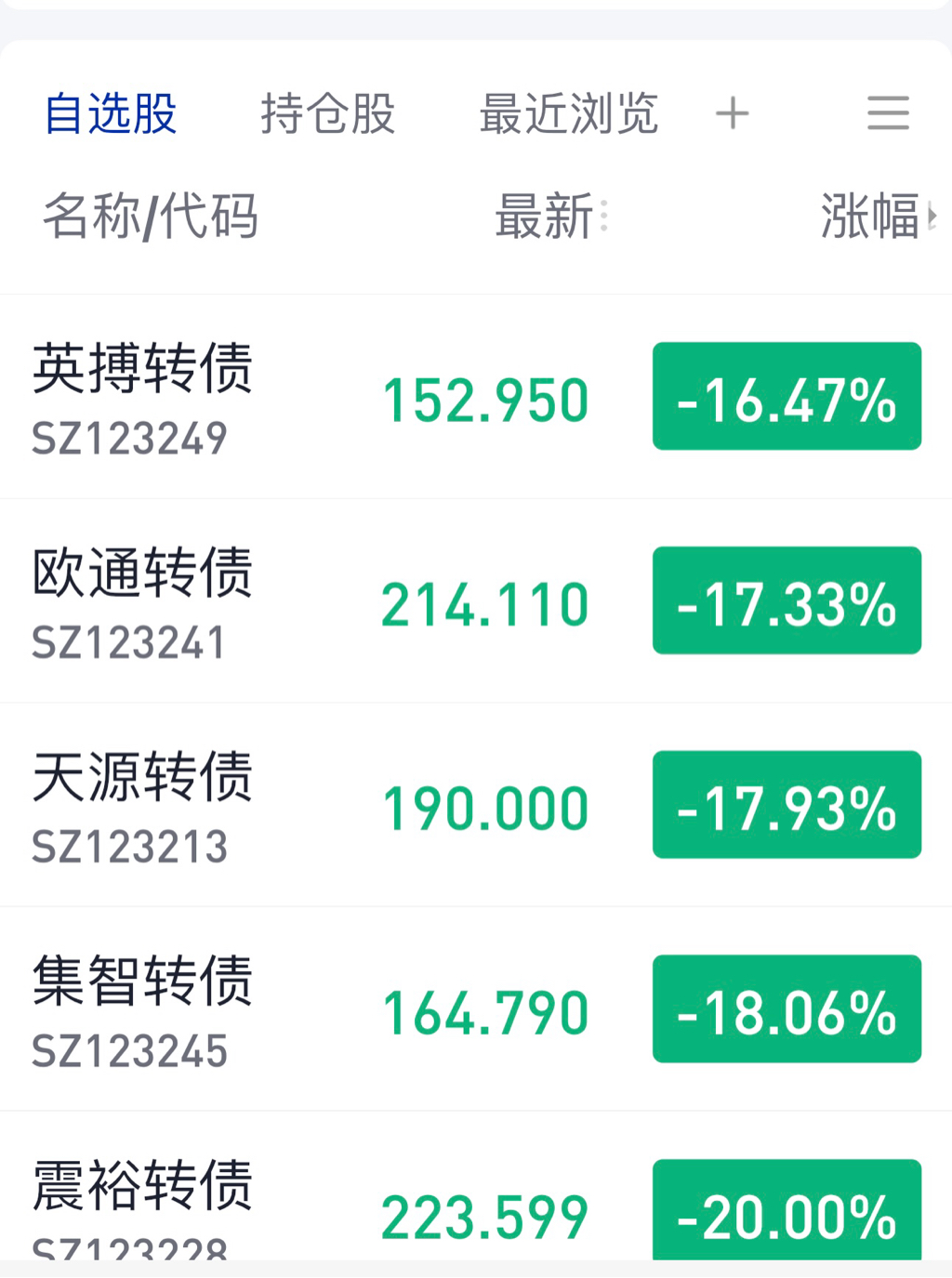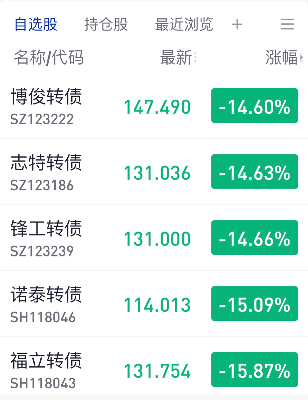 目前持有博23、白电、浩瀚和锋工。平时很看好新债,这几天浩瀚的仓位最重,但是事实证明,像这样大跌之后的恢复阶段不用坚定持有新债,其他可转债的性价比更高。