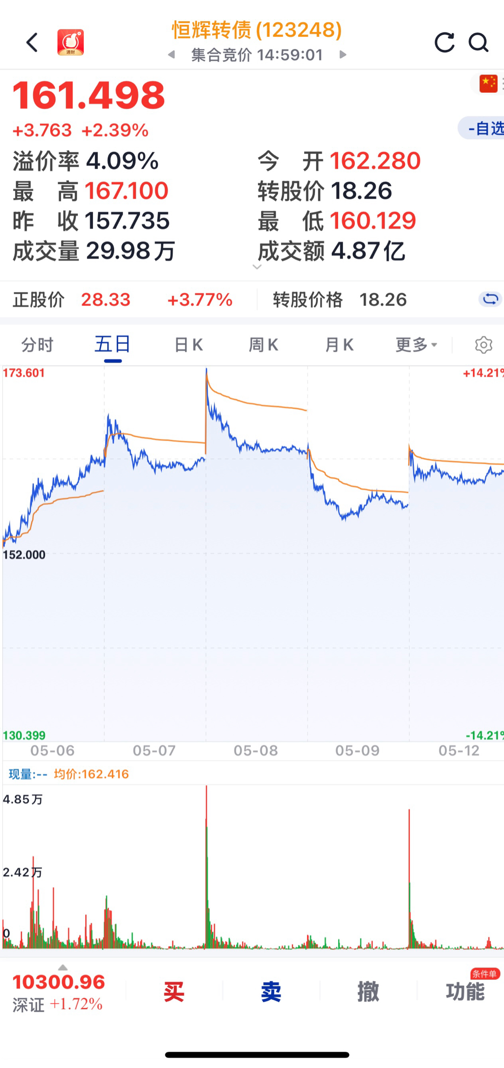 今天买进了几支130多的可转债,目前持有恒辉、春秋、伟隆、超达转债。