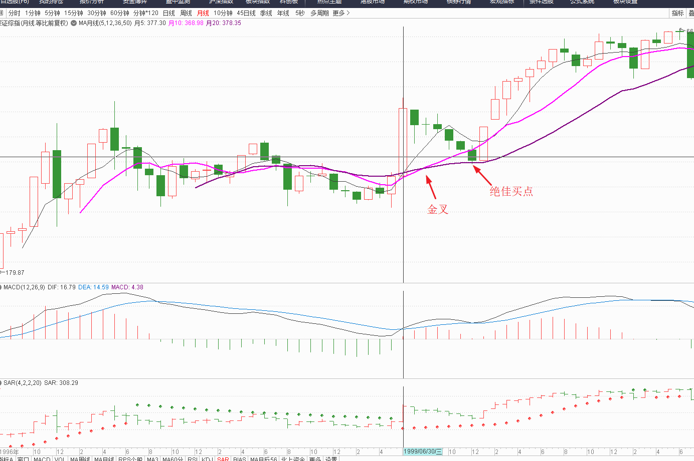第一次,1999年6月,单月上涨43%左右,12月回调至20月线,几乎回吐6月的所有涨幅。