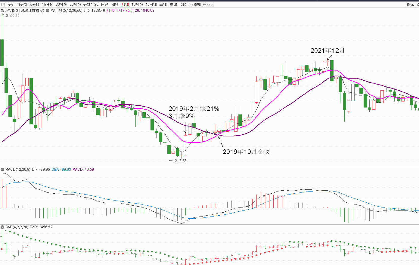 月线10日线上穿20日线,大概率就是牛市的走势