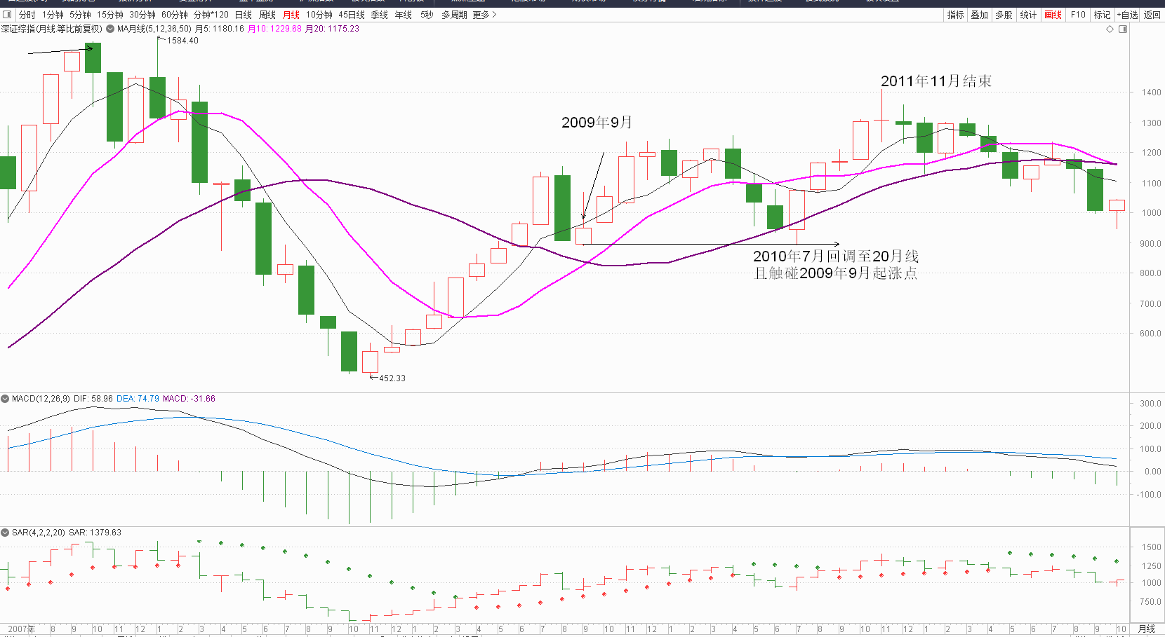 如果10月线向上金叉20月线,,这一技术条件,再叠加一个月线MACD柱是红的,那么历史上只有5次牛市