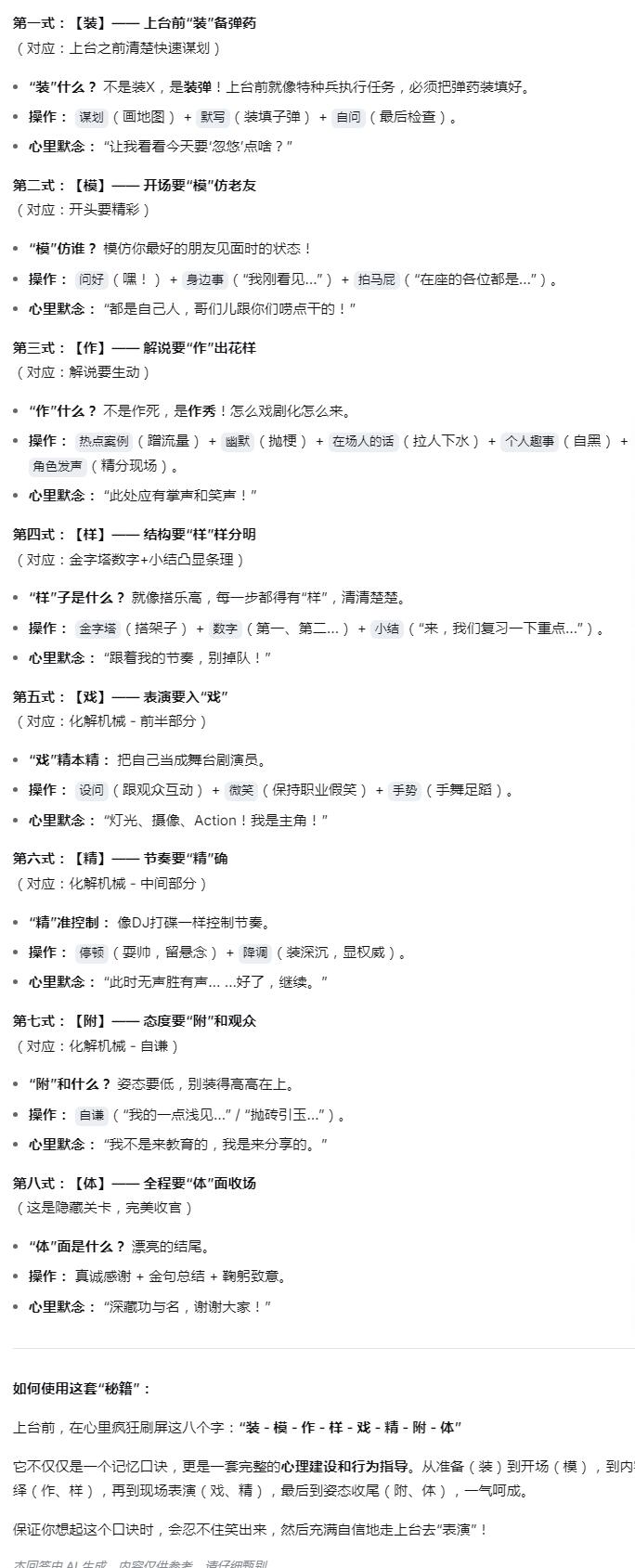 解说五法=要举最热点最高逼格的案例+要有幽默+要有在场人的话+要有个人趣事+模拟角色发声。