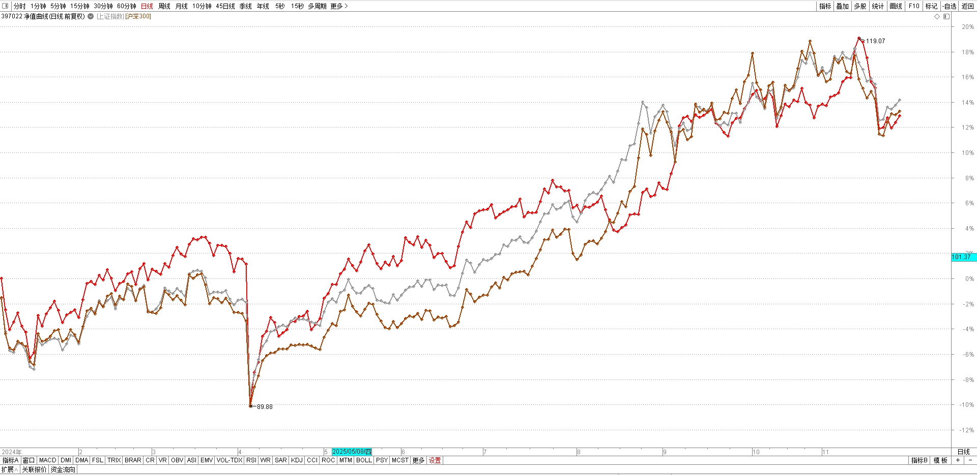 25年各月净值及资金曲线(净值扩大100倍,为了在通达信软件上更好的显示净值曲线走势):