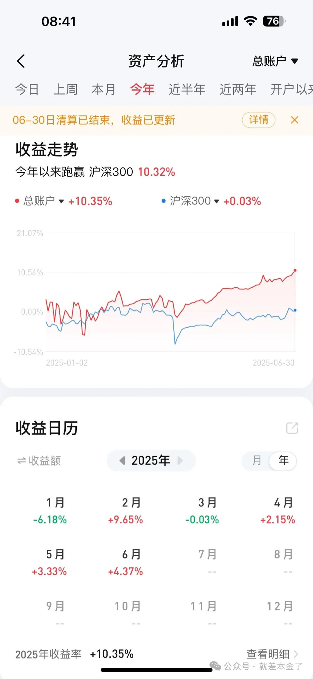 半年收益+10.35%