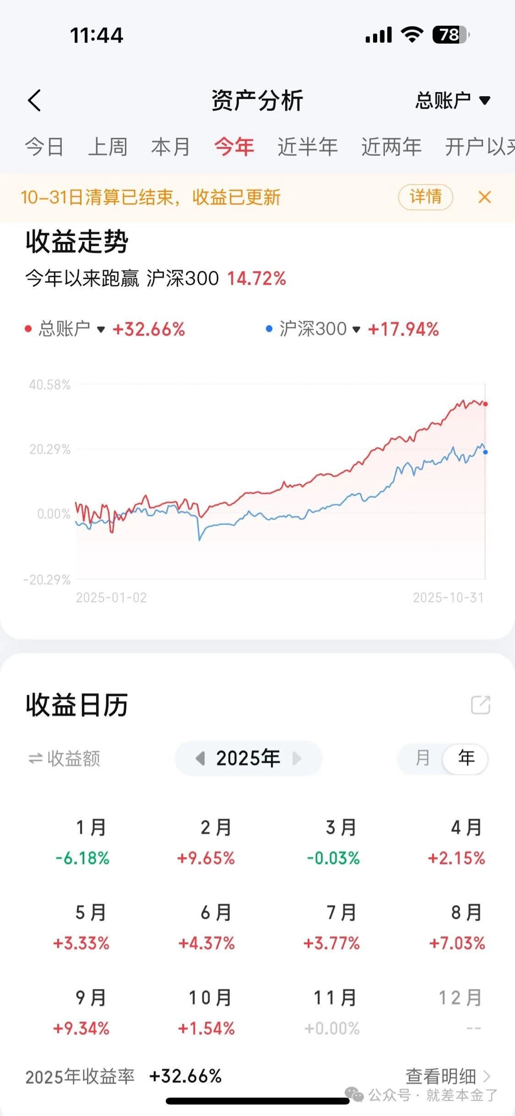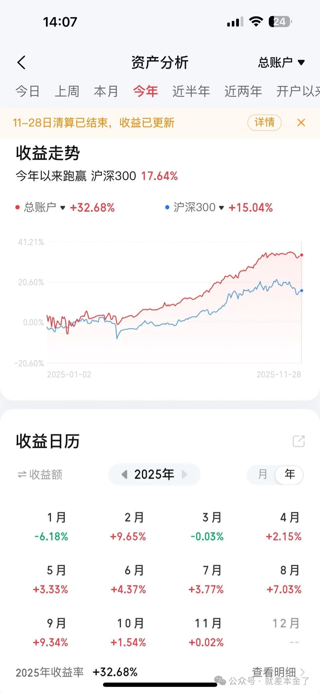 2025累计综合收益+32.68%