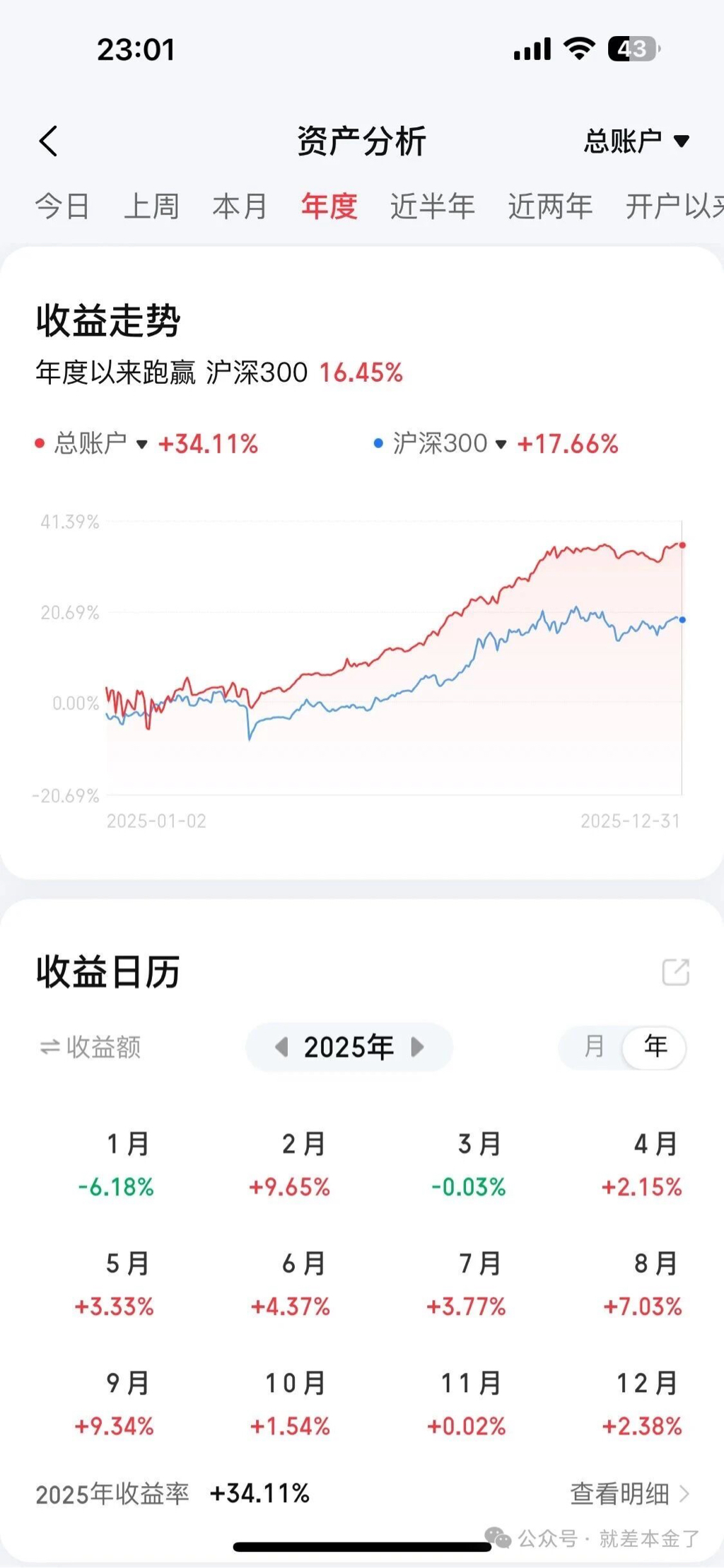 2025全年收益+34.11%