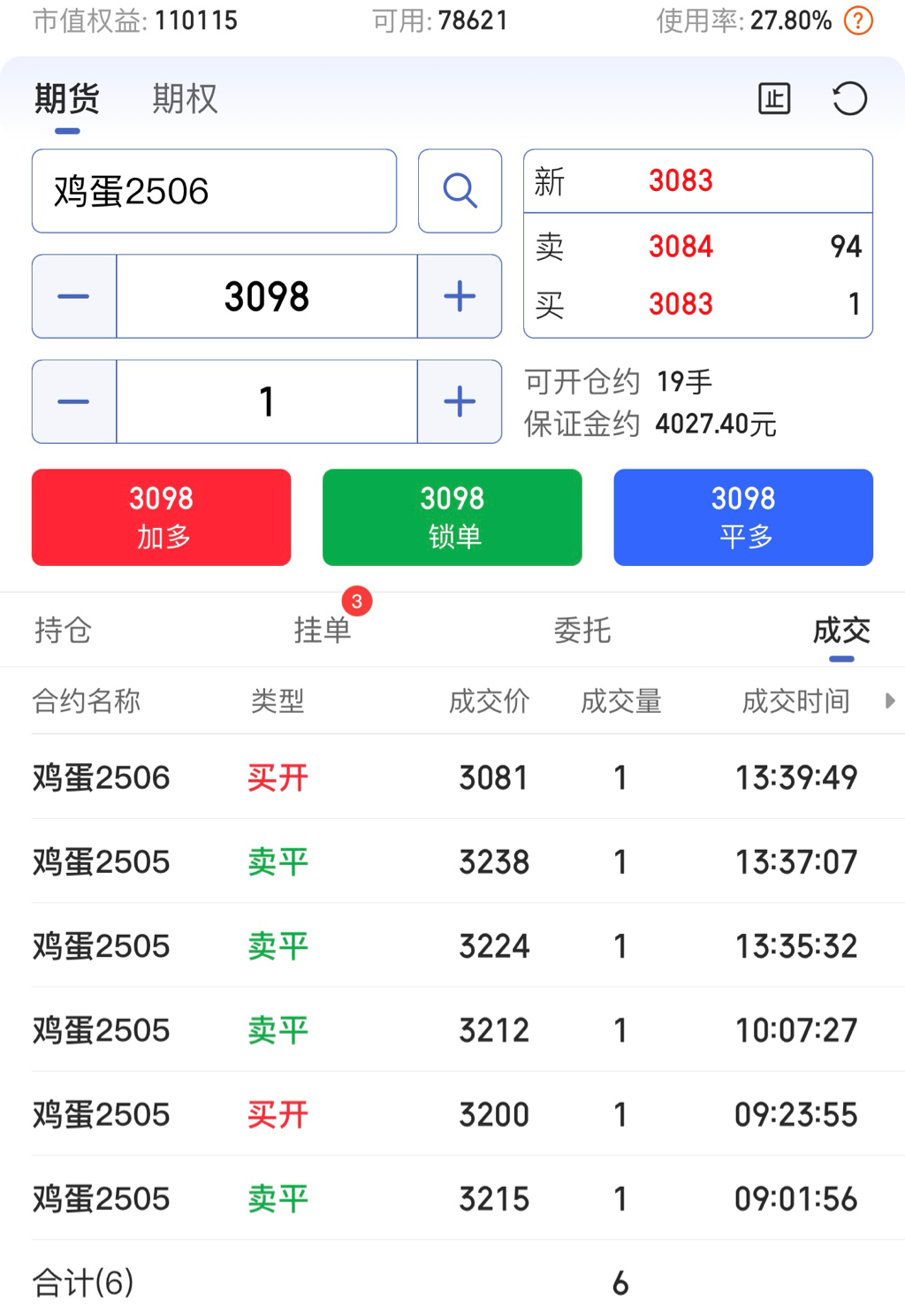 期货手动网格为主,只在相对低位做多,只做远期鸡蛋与花生合约。