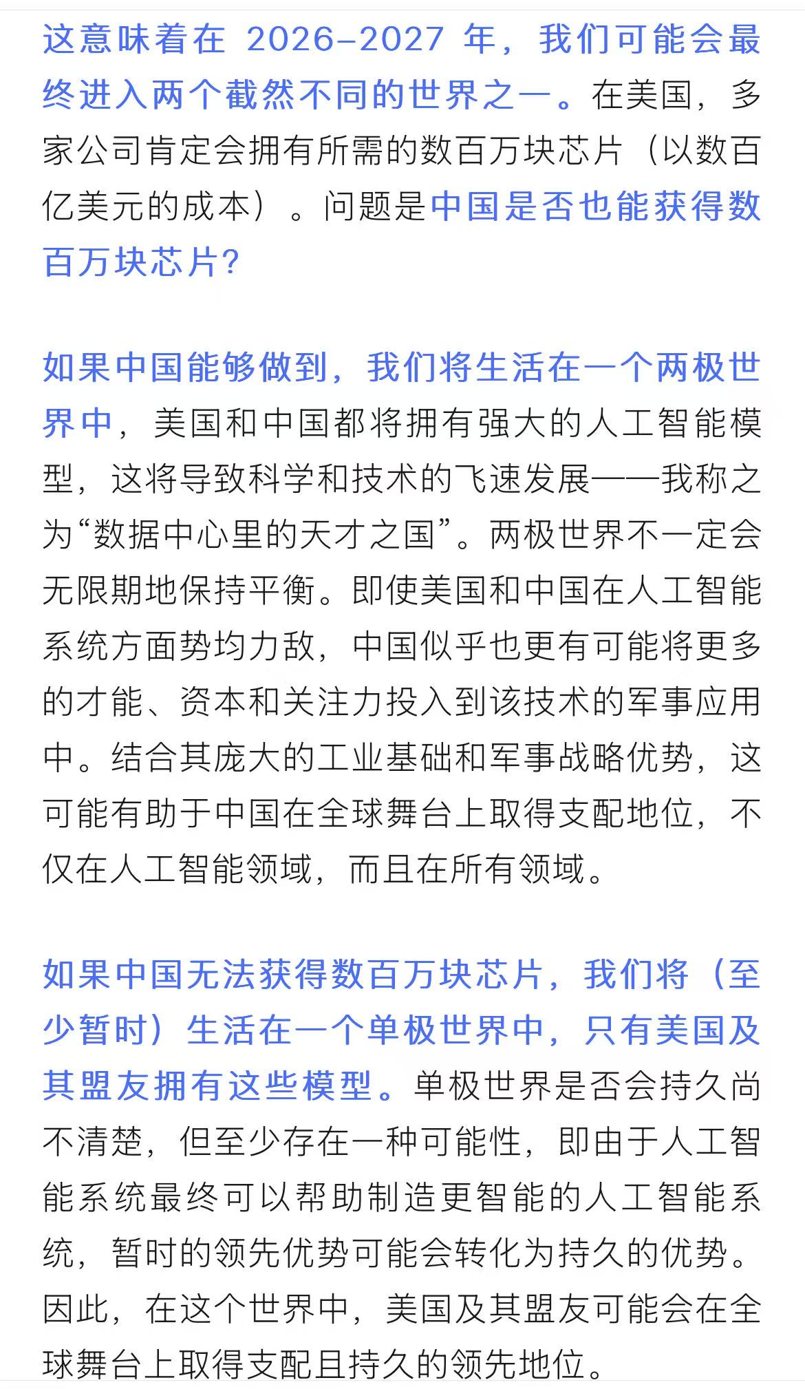 因为DeepSeek西海岸已经把东边想象成一个足以威胁到他们AI发展的竞争对手。他们不再躺平,不再闲庭信步,不再互相拉扯。不再把AI当成是骗钱吹牛吓唬人的工具,而是全力以赴拼搏了。扫除内部所有反对,嘲笑,拉扯,不再对AI反人类顾虑重重。不遗余力发展AI。