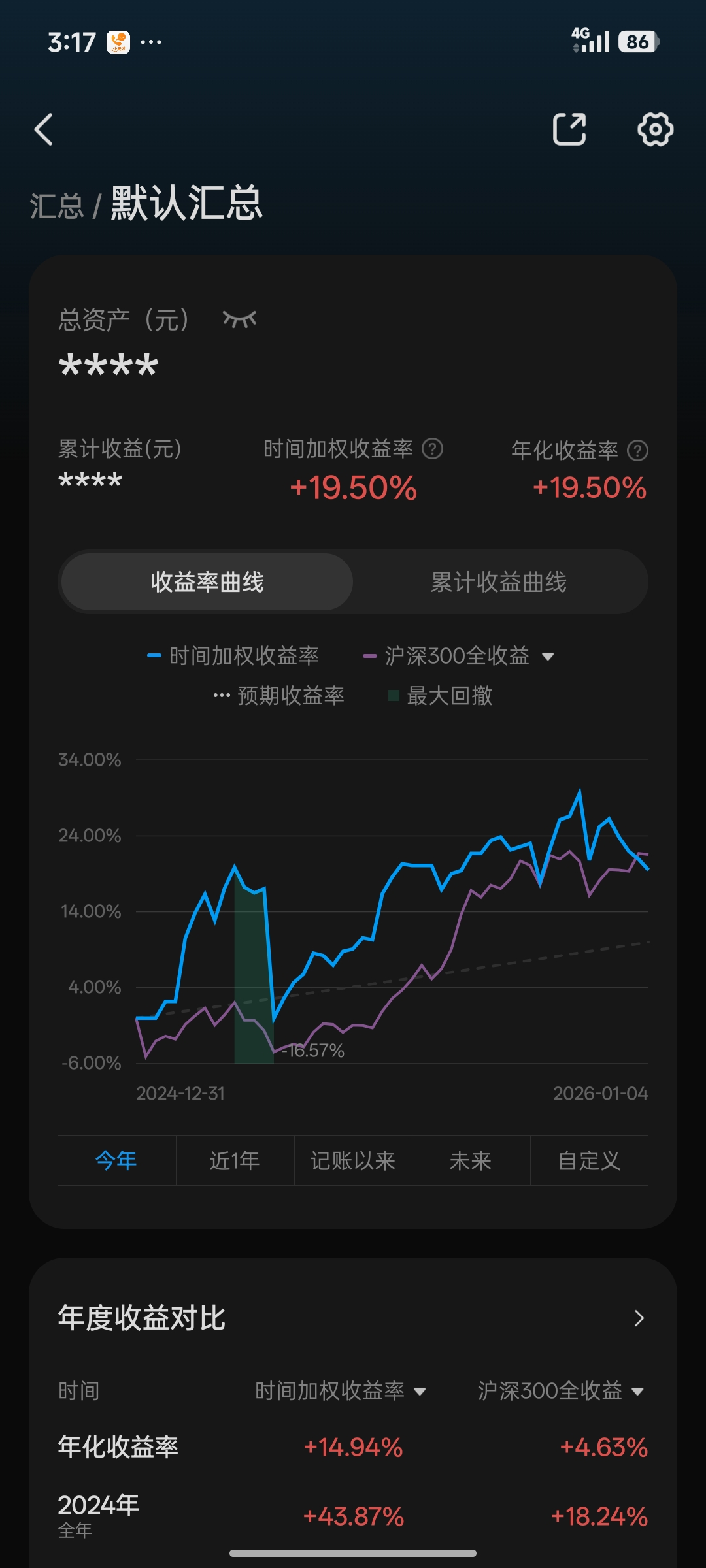 2024年是运气爆棚的一年,无论工作还是投资上,都取得不错的结果。工作上,上半年都考虑会不会被裁掉,下半年迎来反转。投资上,如果没有9月底的一波行情,我还陷在痛苦深渊。