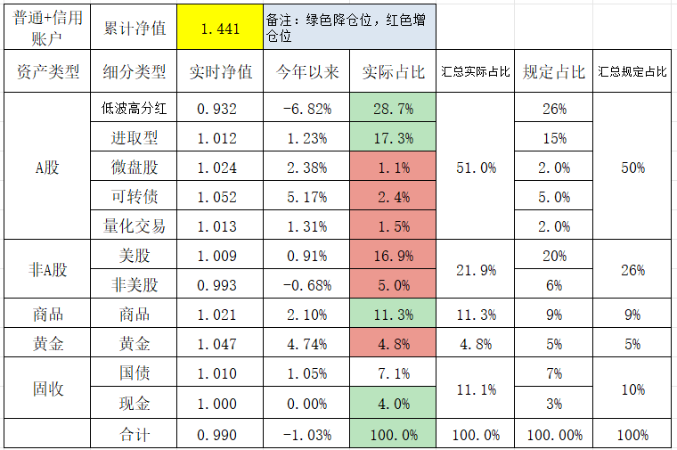制作这个表是为了时刻警醒自己,不能只关心收益率,要弄清楚获取的每一份收益,对应的是用多大风险换取的。时刻关注风险敞口,任何时候,我们都不能放任风险来换取收益,这也是资产配置的核心理念之一。