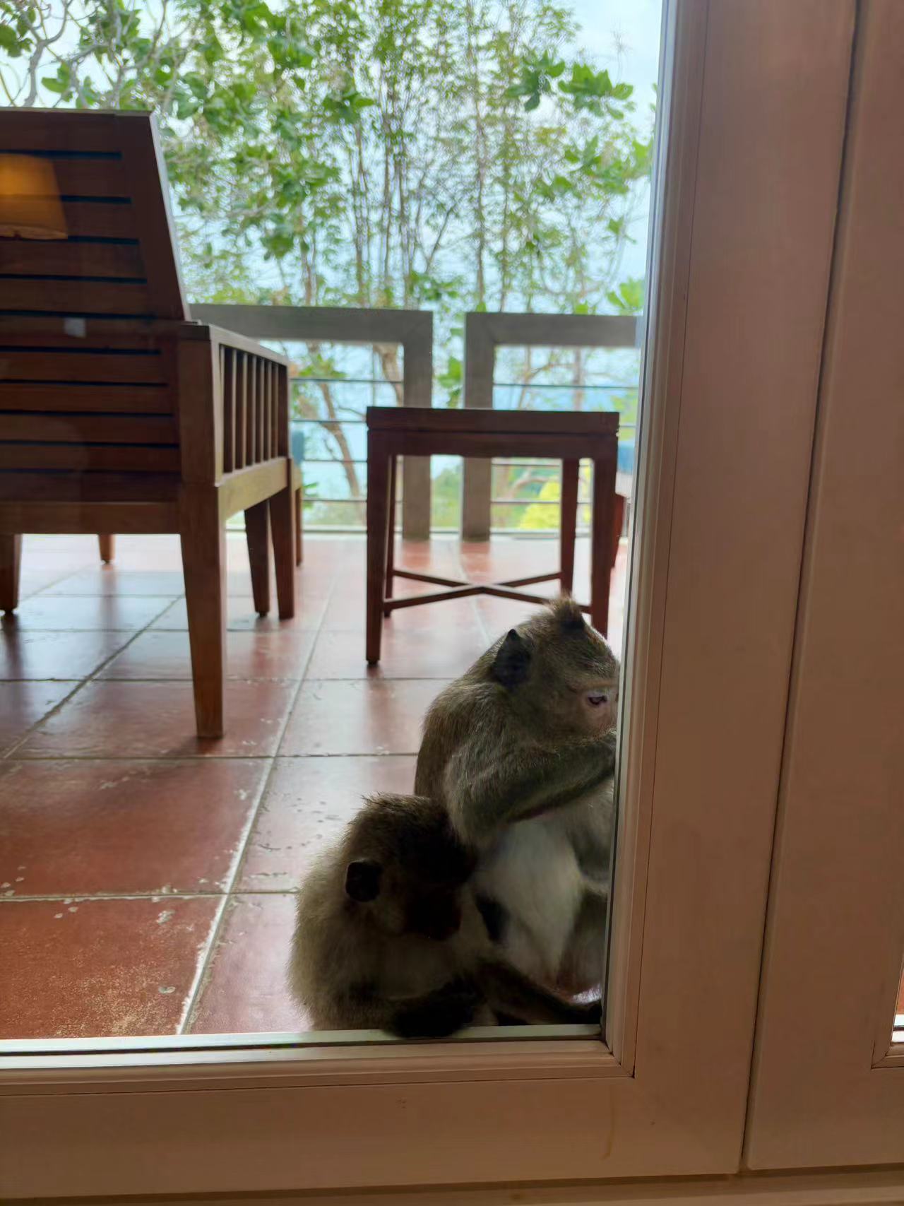 象岛的这个酒店我们春节提前定的700多。夏天估计就400多吧,生态很好,可以说生态也太好了,猴哥会跑到阳台来窜门。有时候甚至想撬门进来。。。