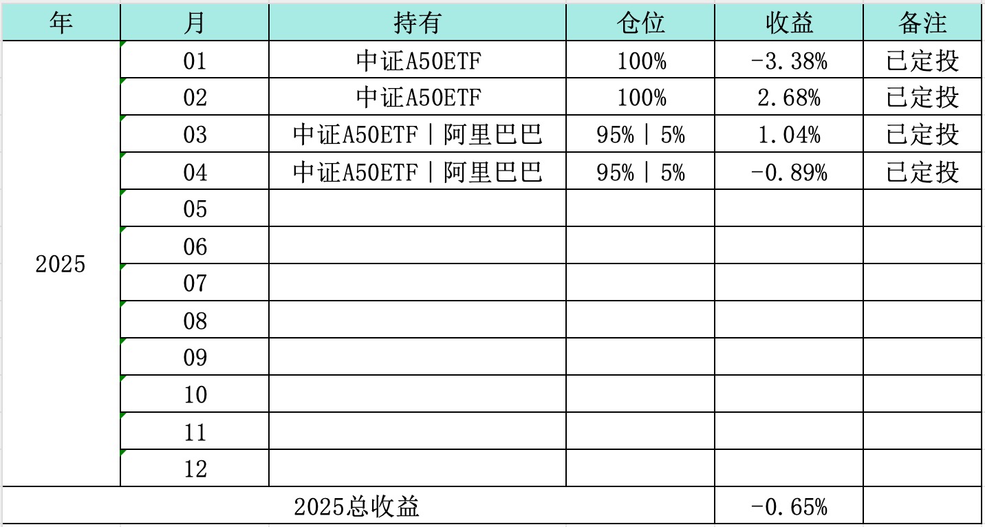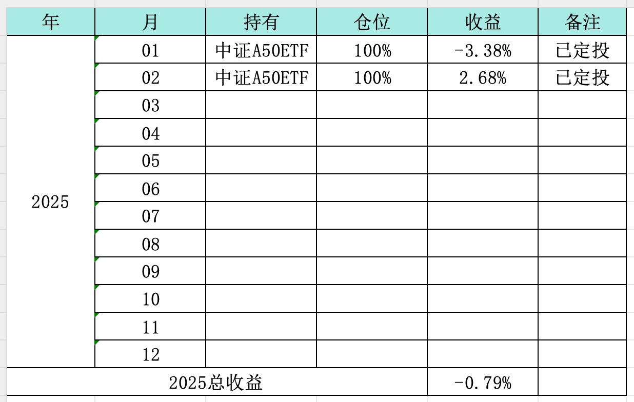 2025年2月收益2.68%,年总收益-0.79%,港美账户盈亏单独计算
