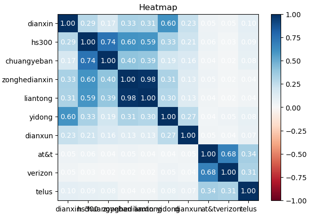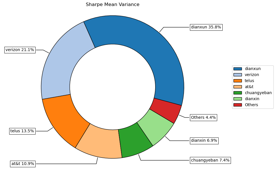 按最高夏普比率配置的话,系统给的权重为6.9%,最大权重给了港股的电讯盈科占比35.8%。(注:占比越高越好)