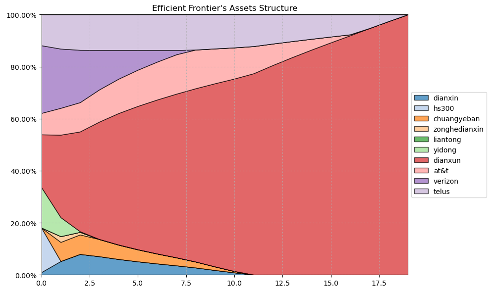 如果换成其他约束,系统给的配置比例也大同小异,基本是在港股的电讯盈科和美股的威瑞森电信之间做取舍了。(注:占比越高越好)