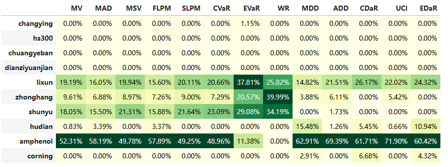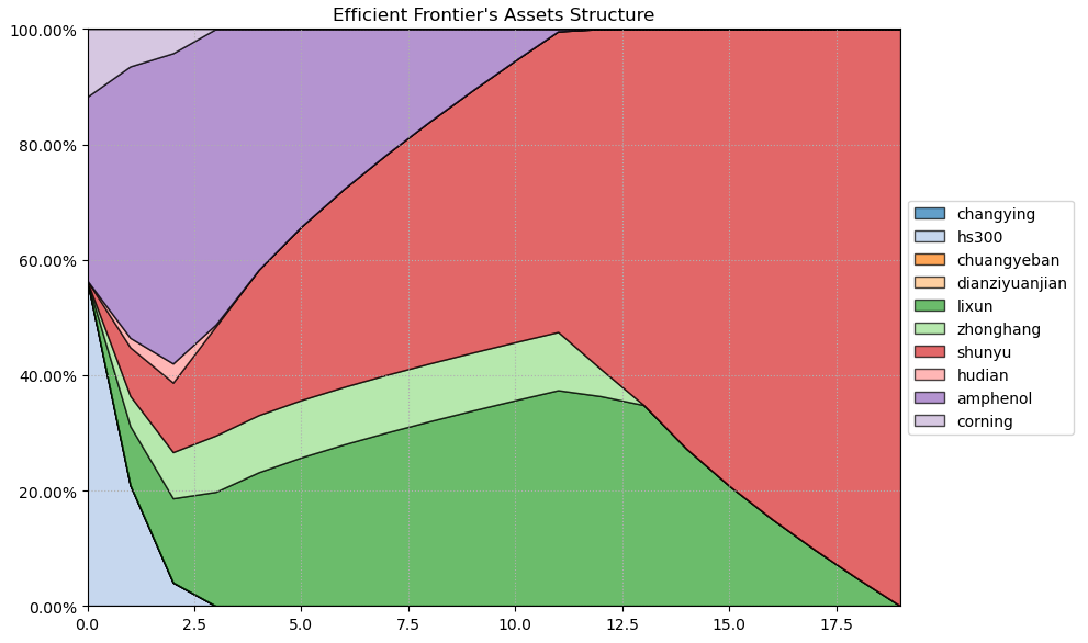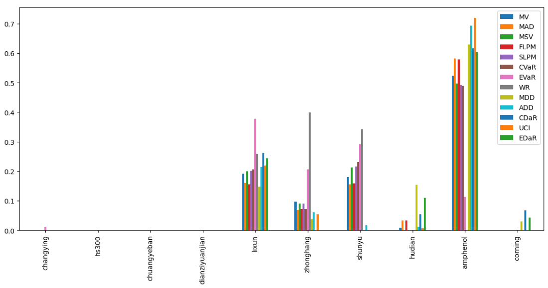 如果换成其他约束,系统给的配置比例也大同小异,基本是在立讯精密和美股的安费诺之间做取舍了。(注:占比越高越好)