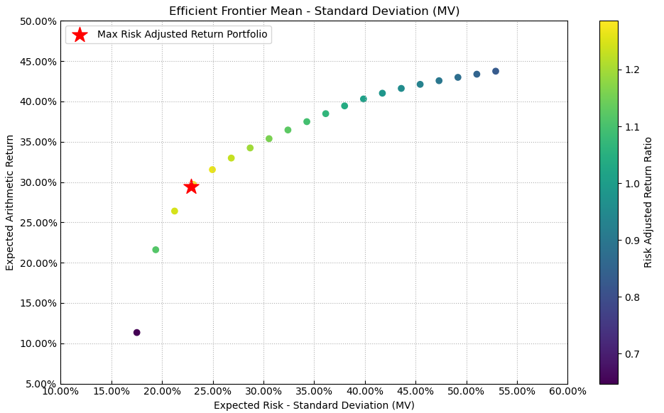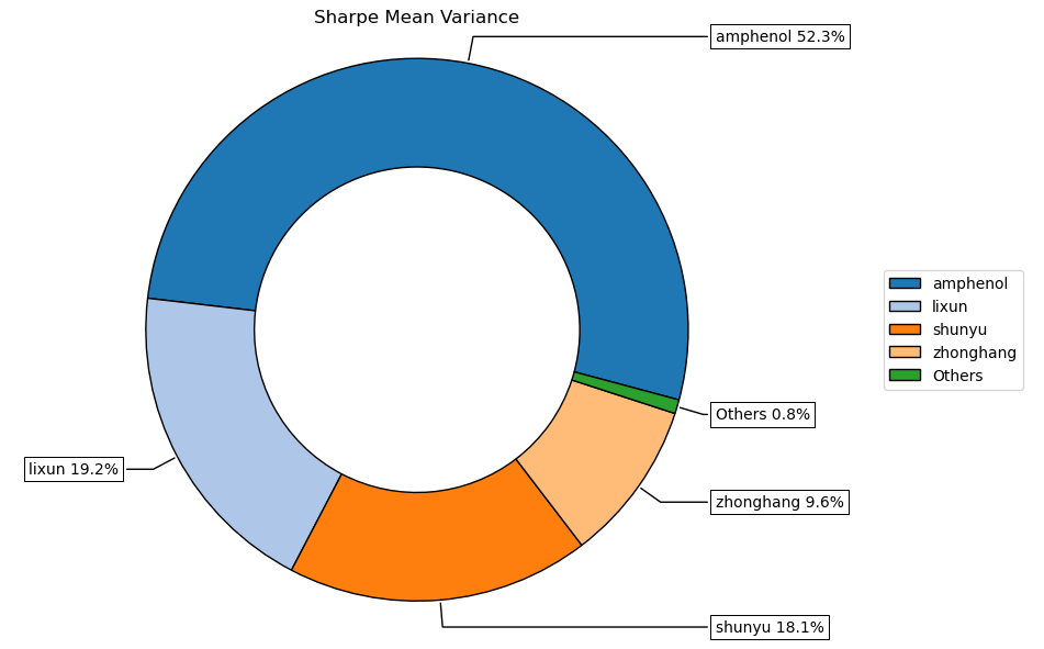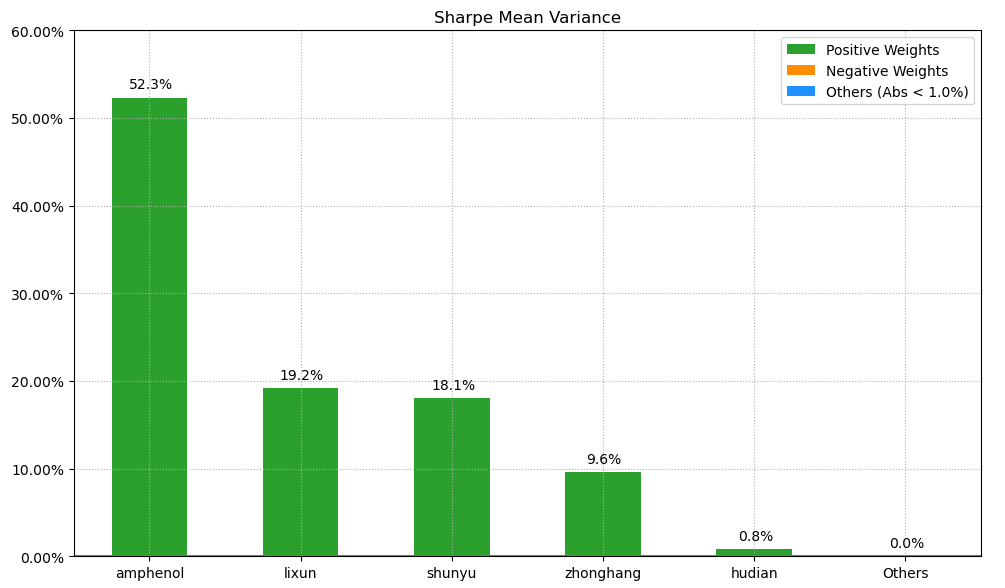 按最高夏普比率配置的话,系统给的权重为0,最大权重给了美股的安费诺占比52.3%。(注:占比越高越好)
