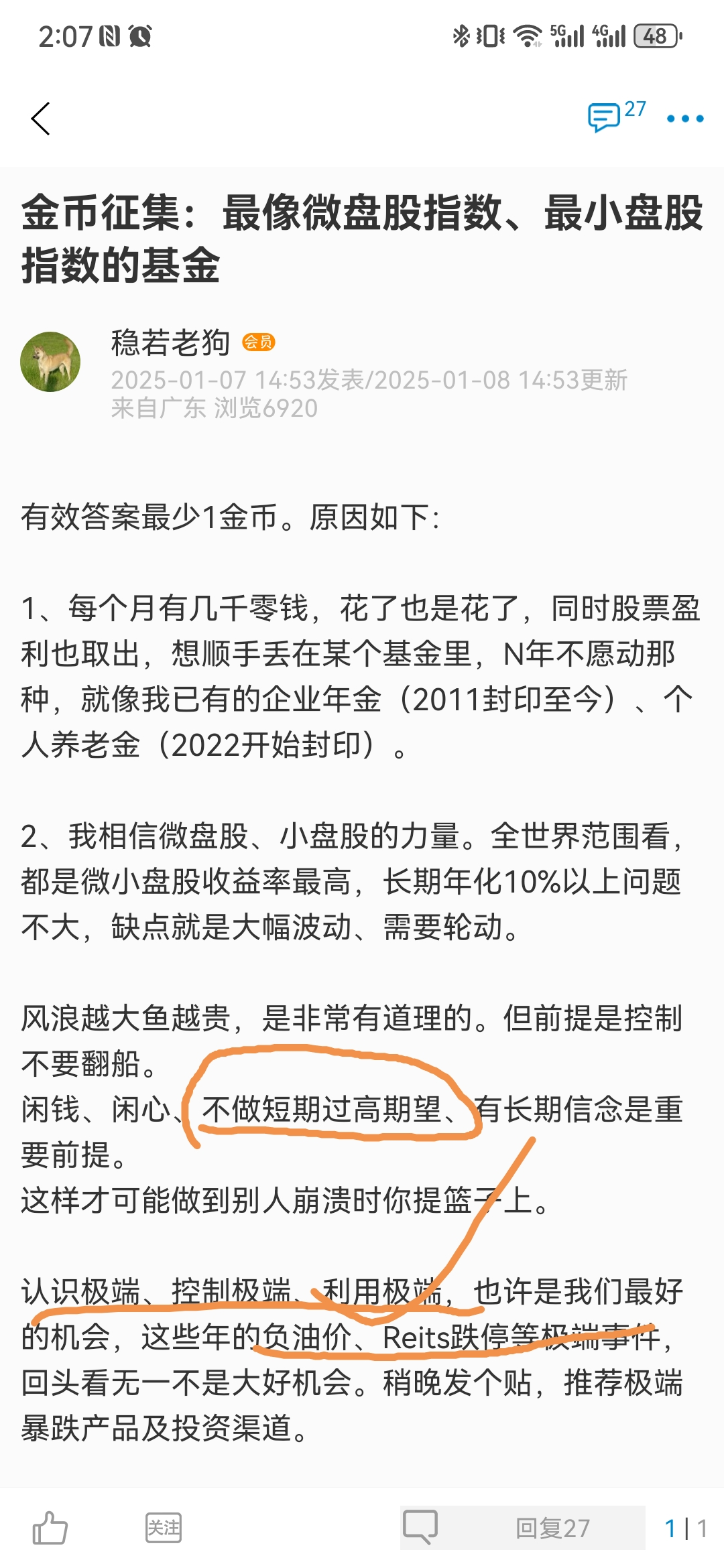 看到司空见惯的言论,胜心(内心总想把人比下去)和纠错心会作怪,对别人的观点嗤之以鼻,把别人当做韭菜,非得不与韭菜想法一样,把所有正常观点屏蔽在自己构建的信息茧房之外。比如他说的酒ETF,大聪明们也知道已经很便宜了,但很多大聪明非得再等个更低的点,不然显示不出水平。
