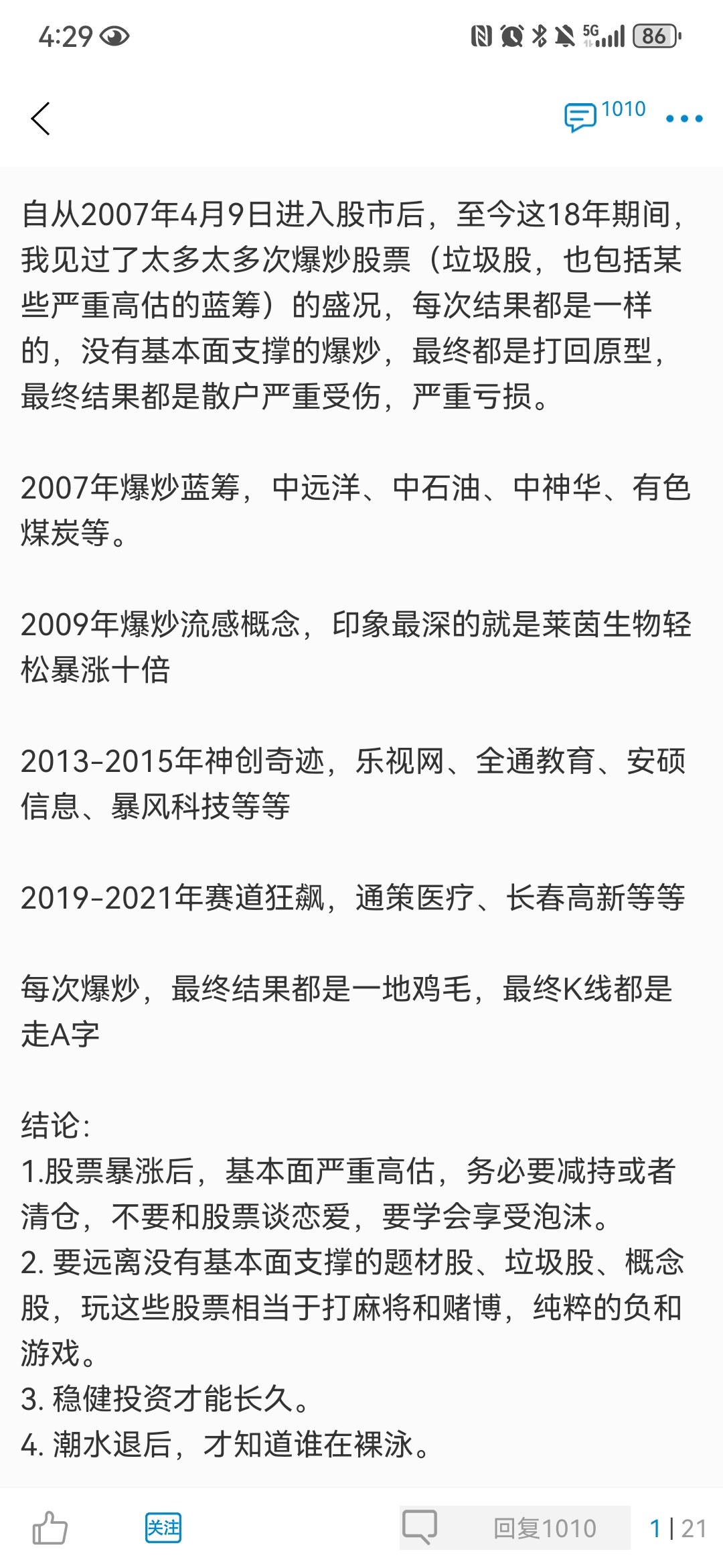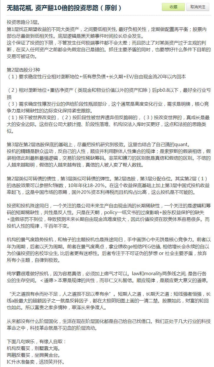 一年五倍者如过江之鲫,五年一倍者寥寥无几。因为一年五倍者,绝大部分是以极大的风险敞口,以极高的破产概率为代价,获得利润的,这种刀口舔血的操作,我是不会眼红的。