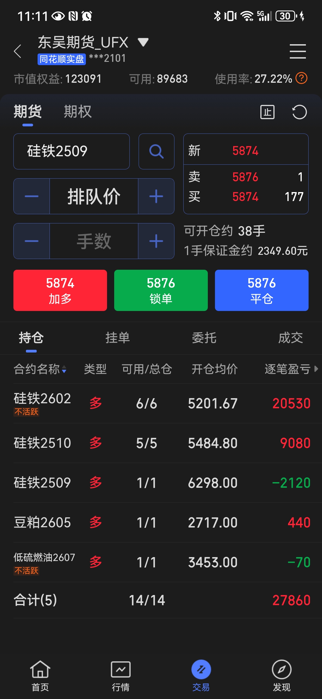 硅铁加仓太快,导致成本不低,反弹后应该及时减仓,却贪恋还能继续涨,想抓一波大行情。回调之后,一个急拉又幻想创新高,短期内就创不了新高,又濒临回到亏损状态。
