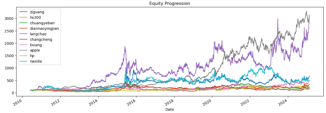 做下回测,选取宽基指数、行业指数、行业内全球对标公司作为一个投资组合进行回溯。