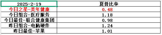 美年健康,基本面差强人意,历史表现中规中矩,目前估值不高,可以关注。整个医疗服务行业历史表现不俗,波动足够低,综合夏普比率很诱人,建议重点关注,美股看联合健康集团,大中华市场看爱尔眼科。(注:夏普比率越高越好)