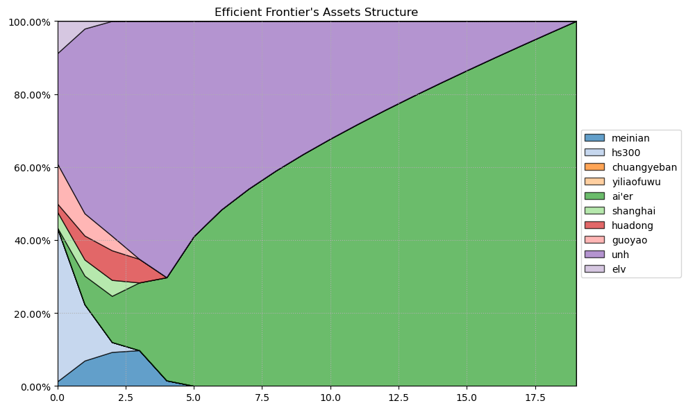 如果换成其他约束,系统给的配置比例也大同小异,基本是在爱尔眼科和美股的联合健康集团之间做取舍了。(注:占比越高越好)