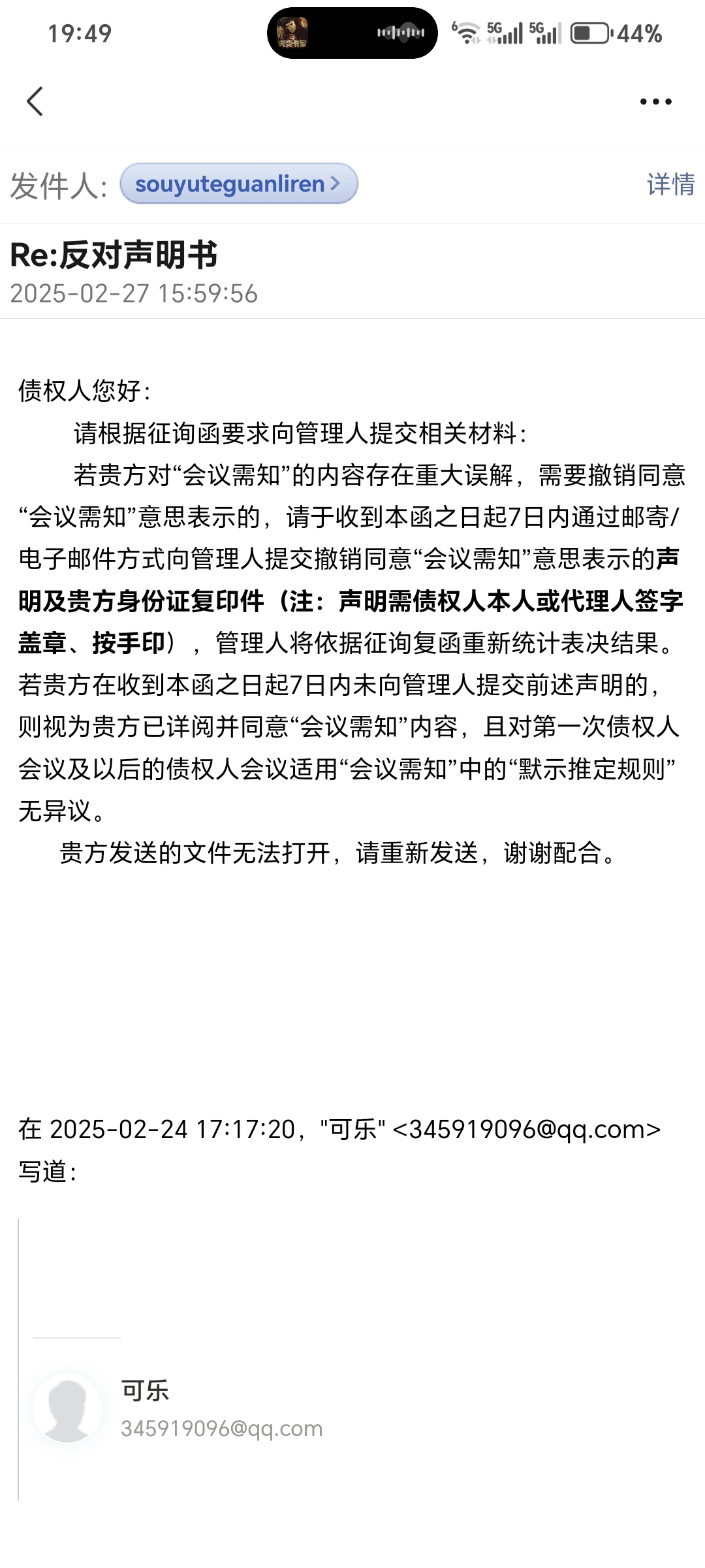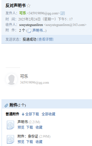 可能你附件没上传完整,所以收件人打不开。电子邮件按论坛模板要求重新发一次,把撤销函 和 身份证 2个图片再发附件一次,不然算是没有发送的哦