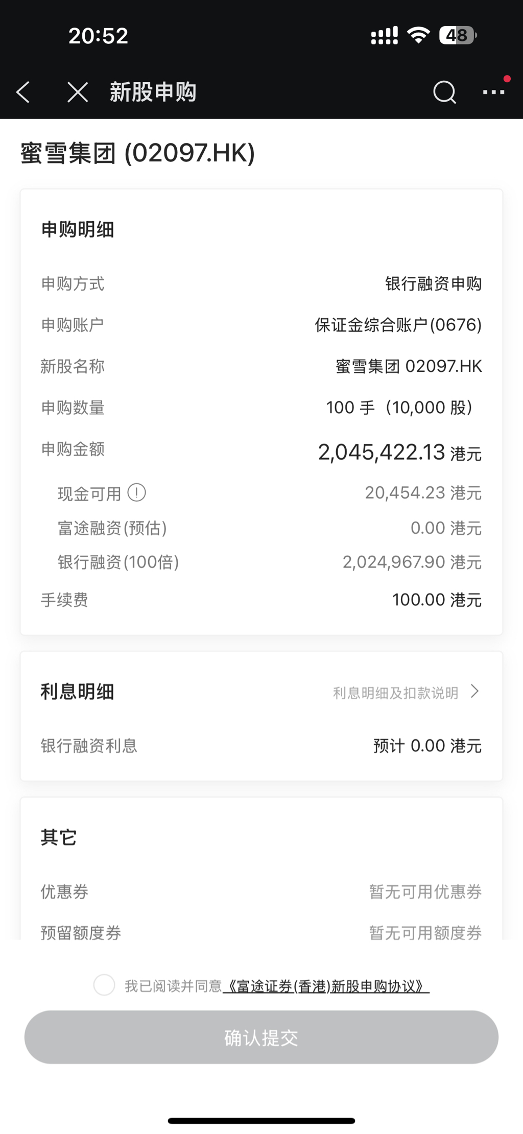 以前通开了一堆的港股账户,关于 蜜雪冰城打新, 大家有什么建议吗?