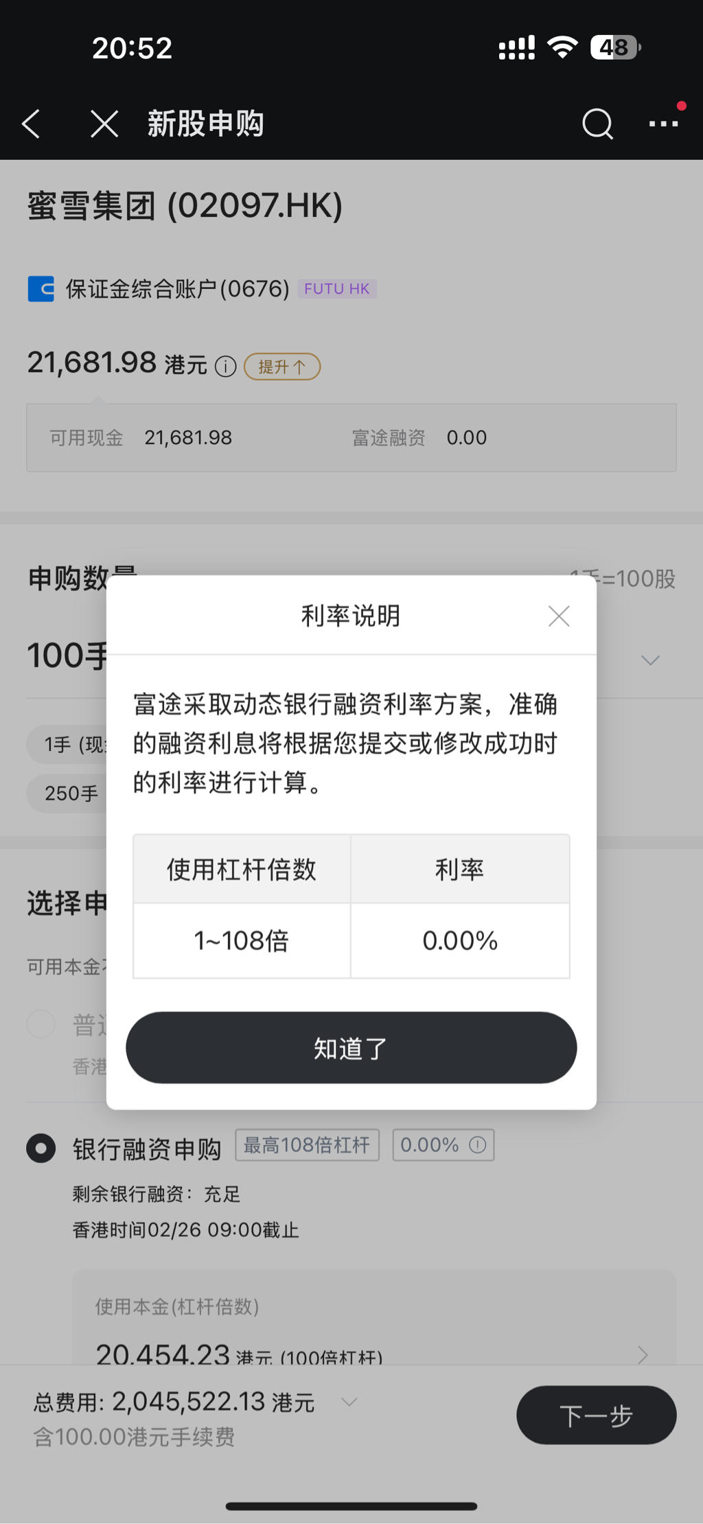 新手第一次玩,就申购了100股,没上杠杆,居然也中了,有种白嫖的感觉。现在就想把爸妈薅去HK帮我开户,哈哈哈,得多点账户才好玩