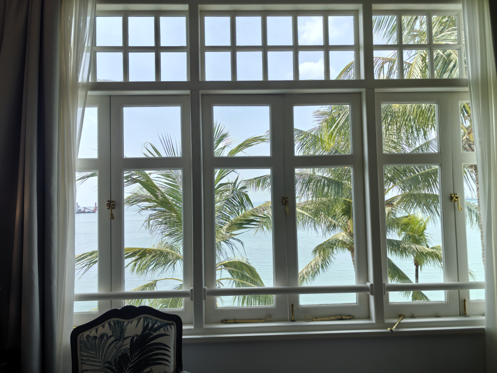 酒店三楼的窗外,已是风景如画,没想到还能近距离开窗看到小鸟一家,幼鸟还是灰色的。
