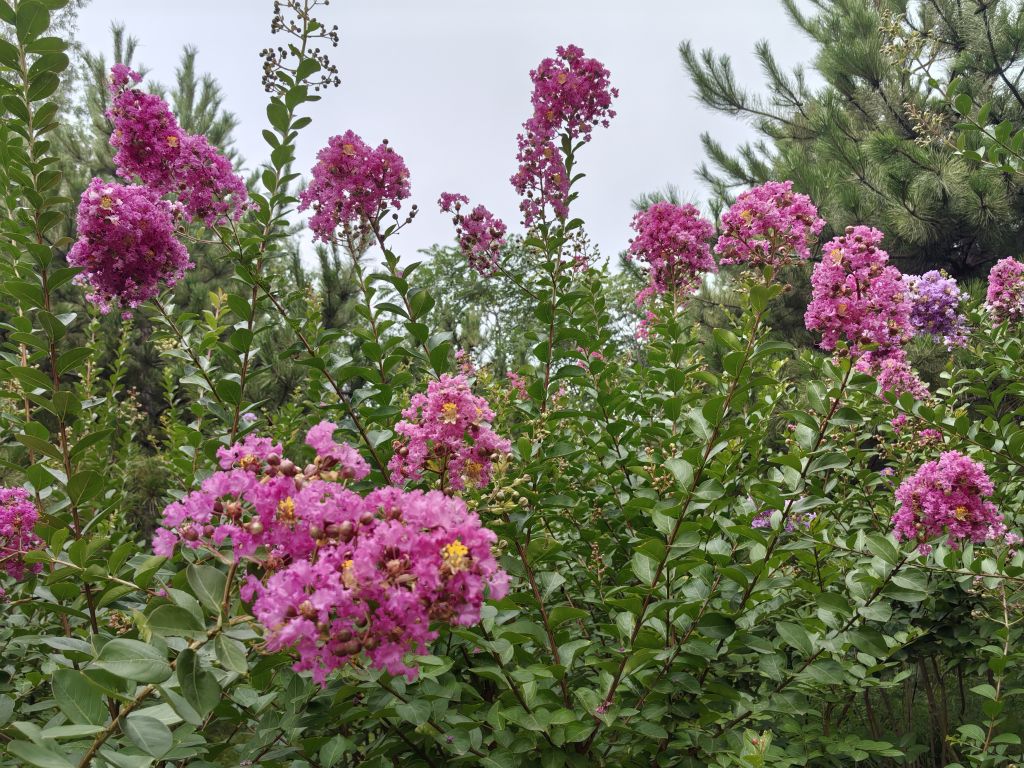 自从前次大风,工地围挡拆除后再封闭,还在修的公园就留了很多隐蔽小缺口。我们进出就更自由了,不禁炫了一句,这新公园还没开放,就要被我们逛腻了。每天下班后逛一圈都要回到槐花林这边椅子下坐一会,感受下清凉,宁静,芬芳的傍晚时光。这两天也很羡慕这只喜鹊,安家在这高高的花树上。回家路上,看到我撒下的紫色鼠尾草也开了,黄色金鸡菊也有花苞了,看来新收的种子就是生命力强,每天走过去,都会探寻新气象。