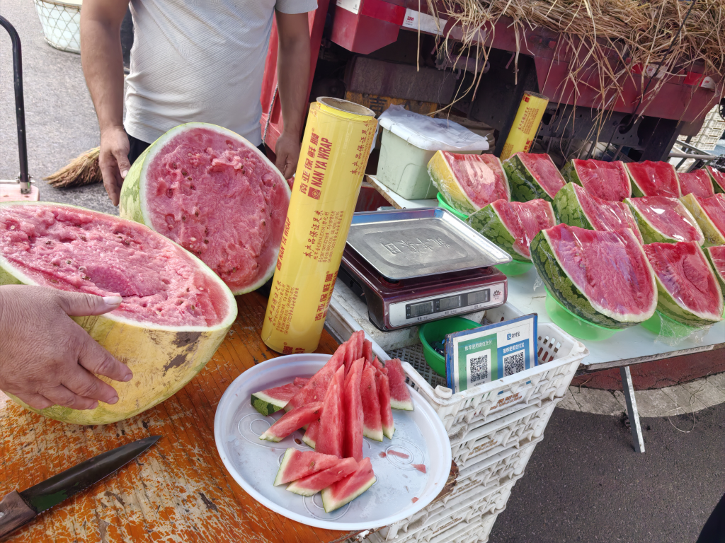 周日的菜市场人不挤了,门口的西瓜更大了,一副我为菜市场代言的样子,上前合影的人不断。路过调料市场外面的时候,我深吸了一口浓厚的香气。以前,不怎么来这样大市场买菜,去年来才发现调料区这么大,是和卖菜,卖肉,卖水产并列规模的大区,全天人流不断。调味品果然是味蕾黄金,希望我刚买的调味股涨起来。