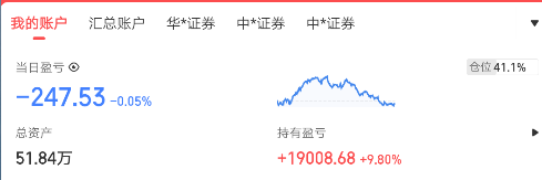 资产518450,仓位41.1%;