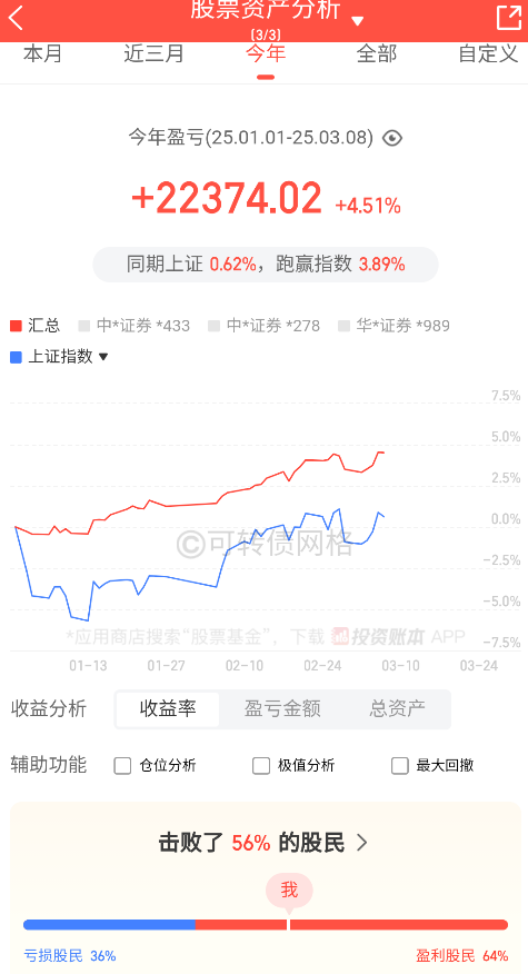 年收益22374,收益率4.51%;