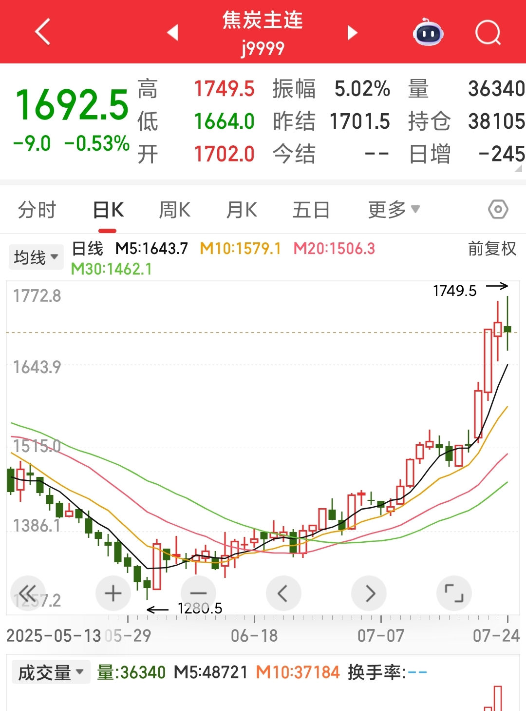 反内卷,煤炭控产能,期货价格近期大幅上涨。